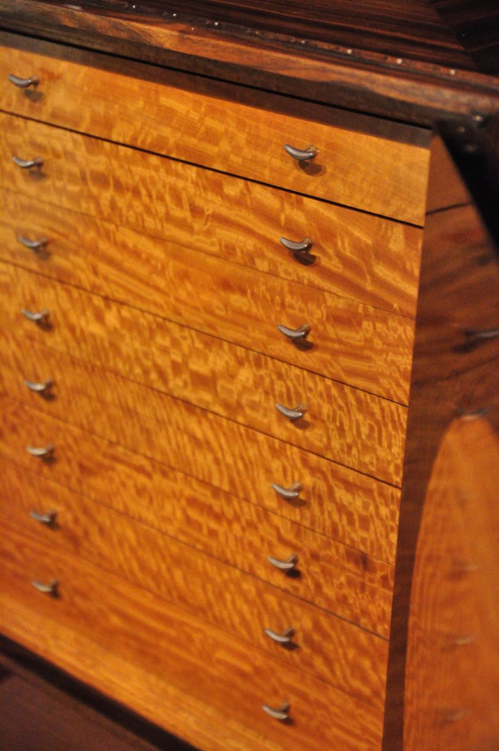 “Whether you like Arts & Crafts furniture is irrelevant if you are a woodworker. Even if you dislike expressed joinery, native materials and the color brown, the Arts & Crafts movements in England and the United States were a turning point for craftsmanship.” Since publishing this, Christ Shwarz of Lost Art Press, who attended the same museum tour with us (and was visiting the school that week to run a box making course) has posted his own blog post on similar themes, executed far more eloquently, if you’d like to read it here. Chris is pictured with David below.